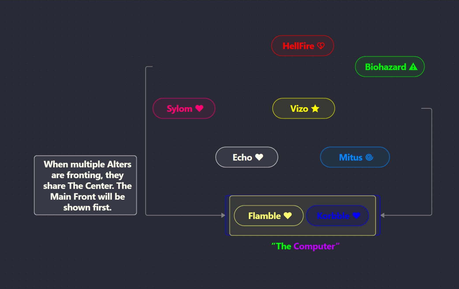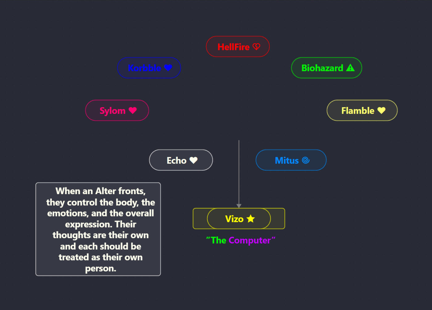 ππ || All of my Alters/Parts are connected to me and make up who I am. I am considered "Whole" when all my Alters converge to create, well, me!If you wanna learn more about myself, here's my Main Carrd.