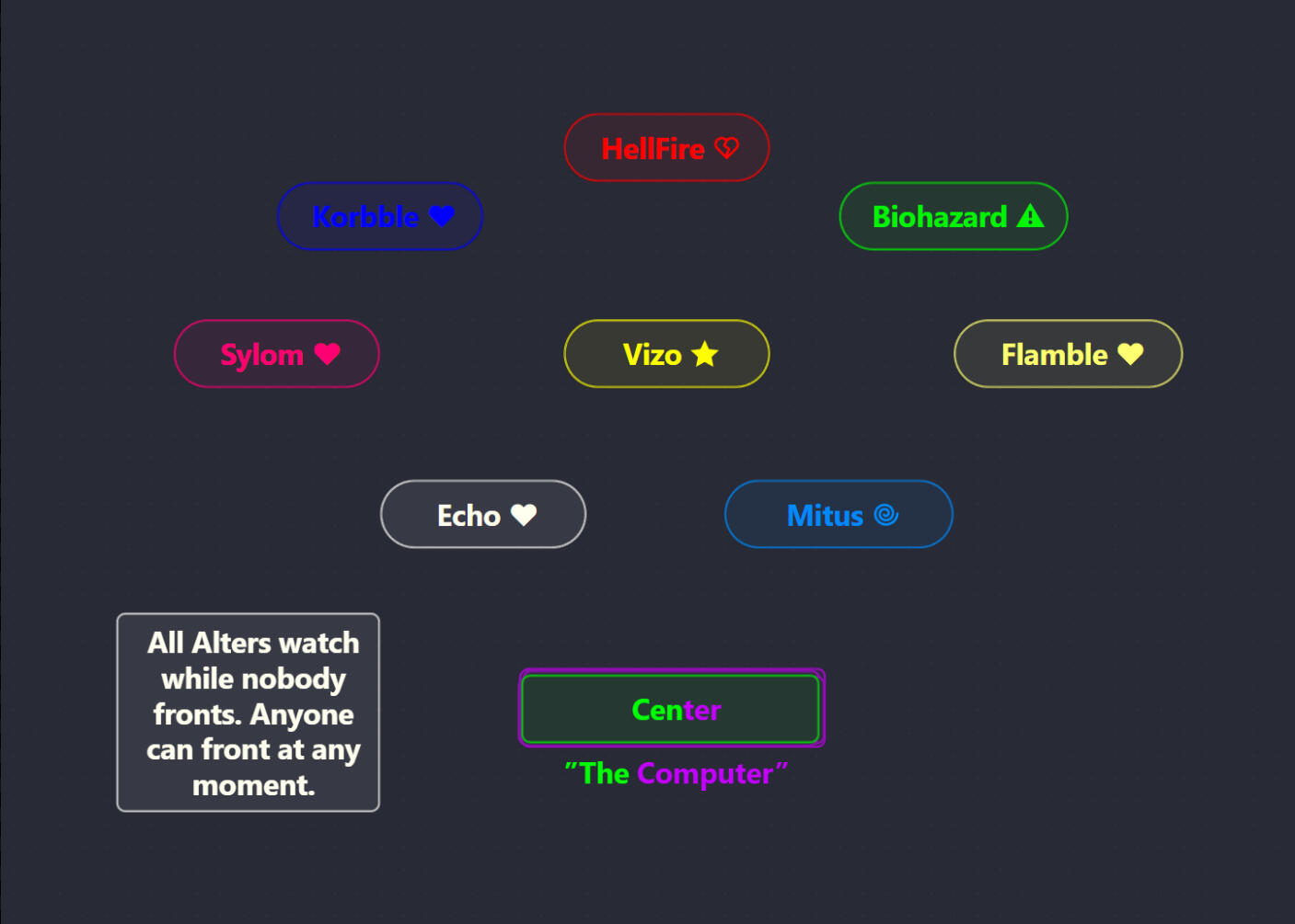 Of course, things will change in the future, this Carrd is to help me express how I feel about my system and my Alters/Parts.